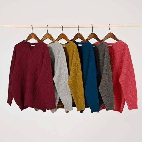 からだをつつむ / アラン柄プルオーバー キーネック ウール100%