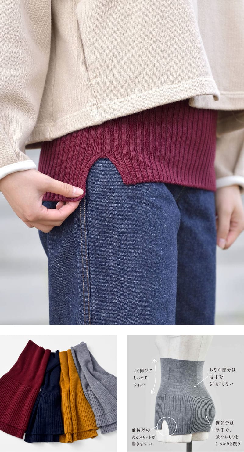 おなかをあたためながら、重ね着をしているようなニュアンスをつくれる「見せるハラマキ」です。