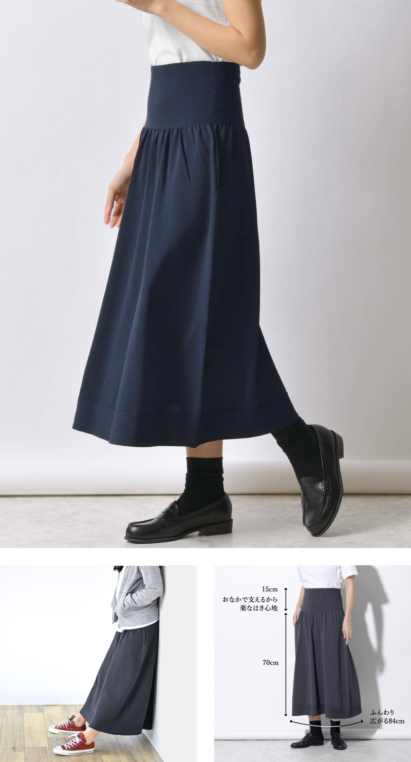 縫い代のないホールガーメント製法で編み上げているため、きれいにスカートが広がります。