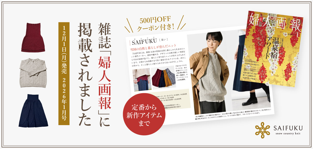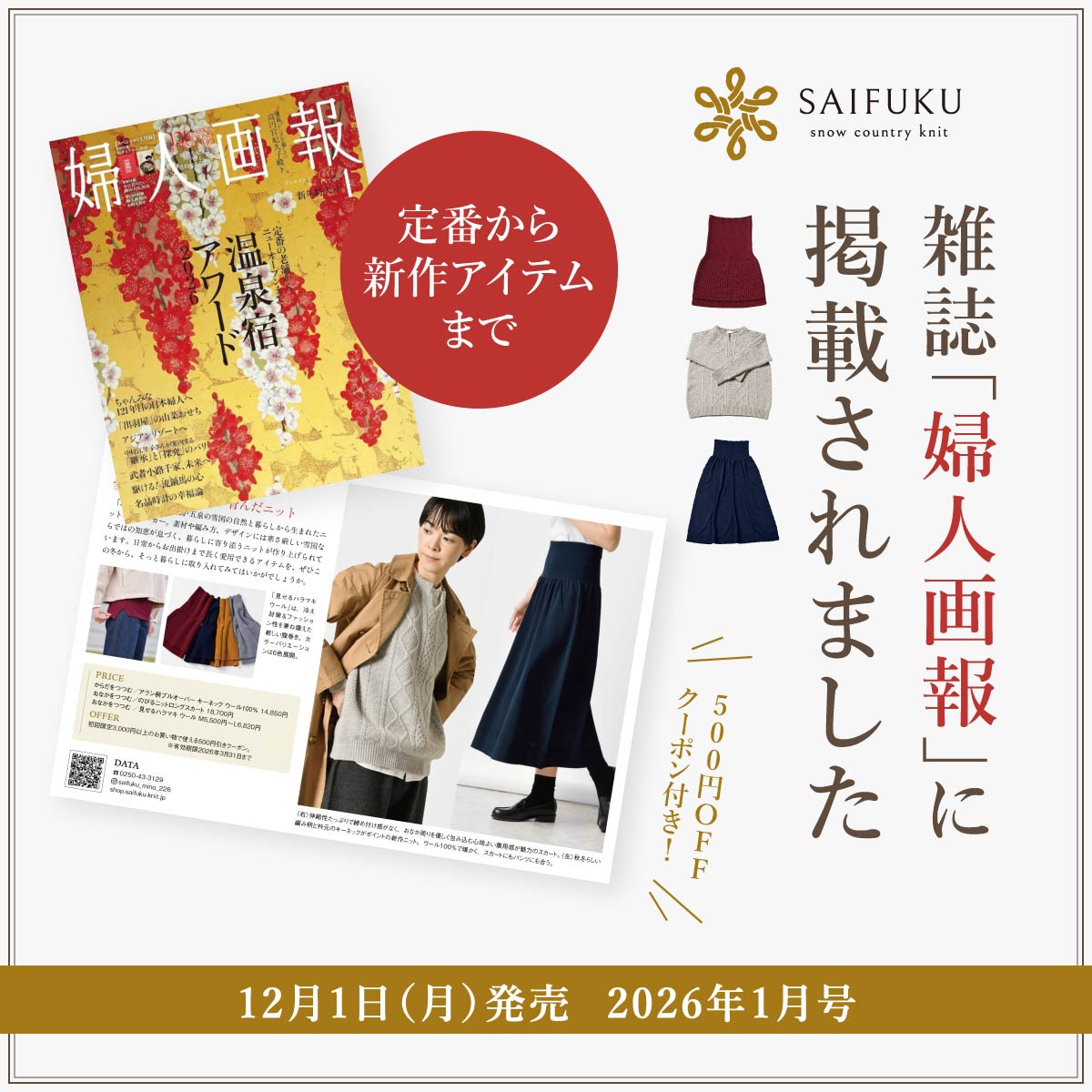 このたび SAIFUKU の人気ニットが、雑誌「婦人画報」に掲載されました。
