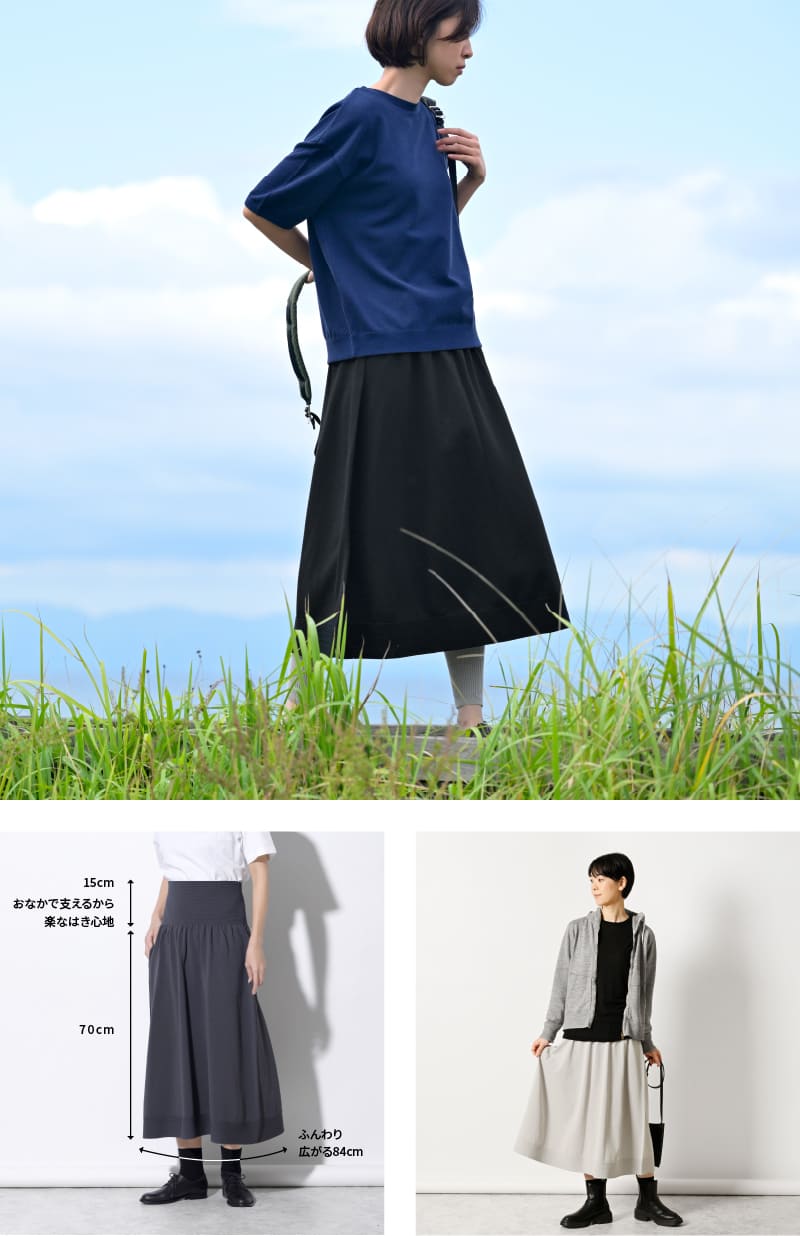 おなか部分がよく伸びて楽に履けるだけでなく、日常から日焼け止め対策を。