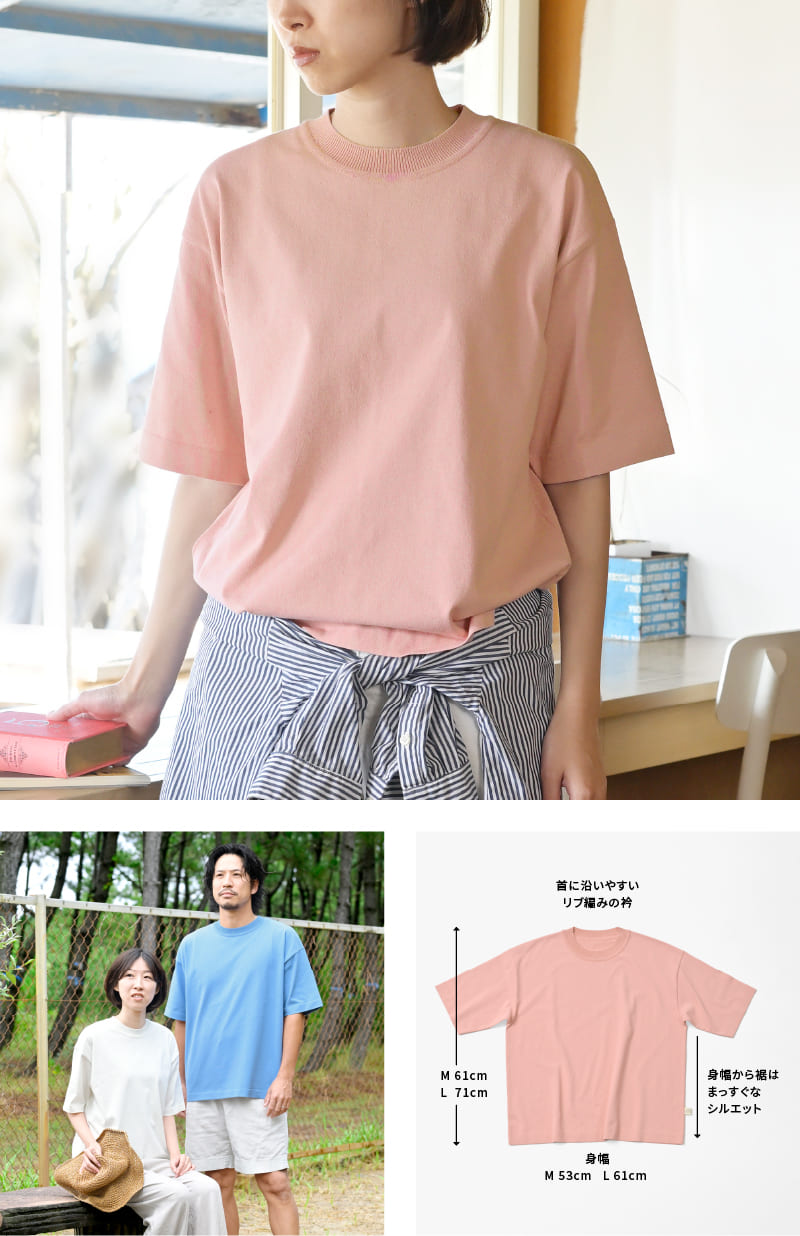 ハリのあるTシャツは、ドロップショルダーで上品な雰囲気に仕上げました。