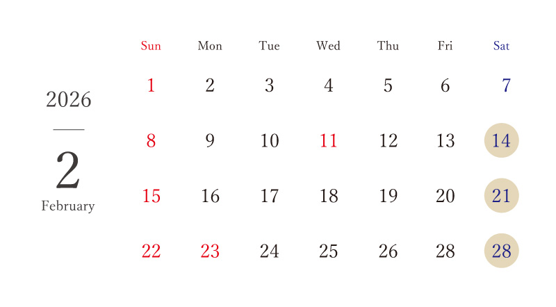 営業日 : 土曜・日曜(詳しくはカレンダーをご覧ください)