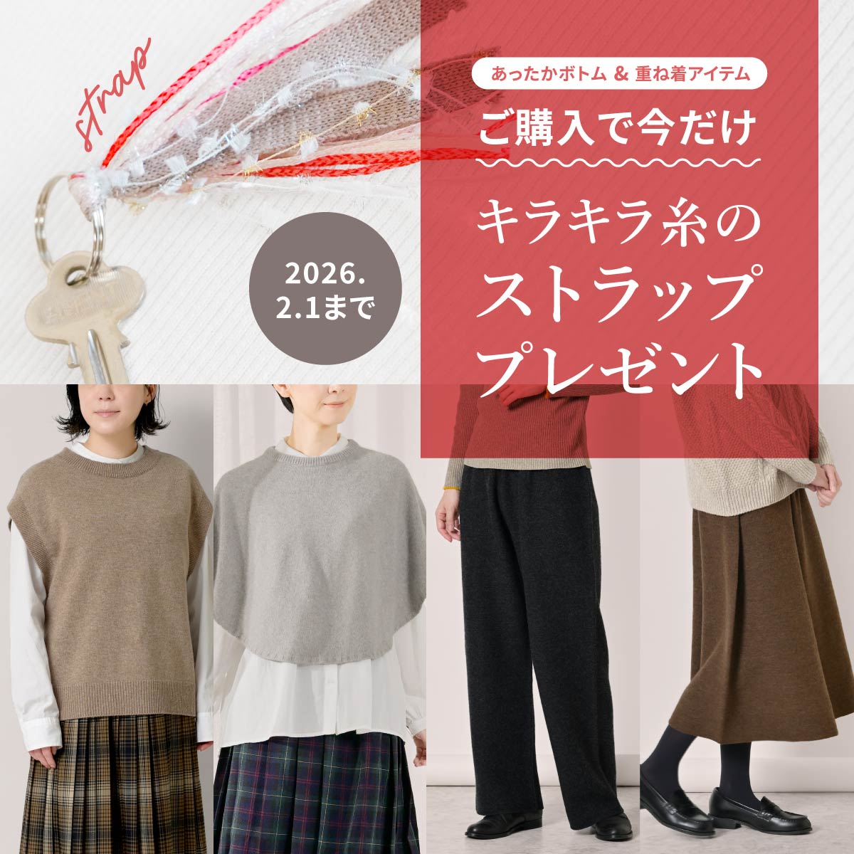 あったかボトム&重ね着アイテムご購入で、今だけキラキラ糸のストラップをプレゼント!