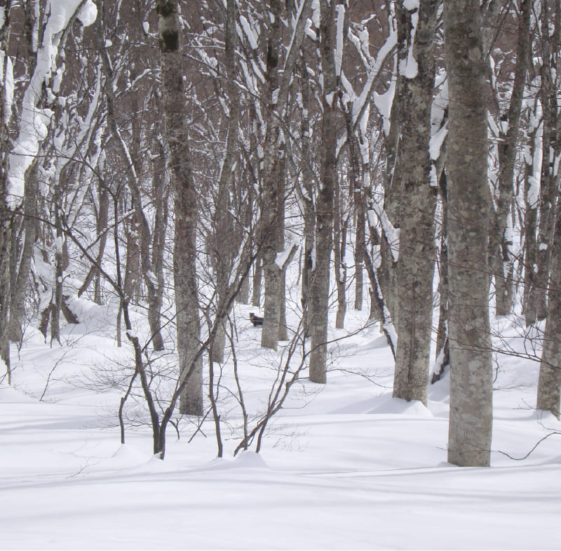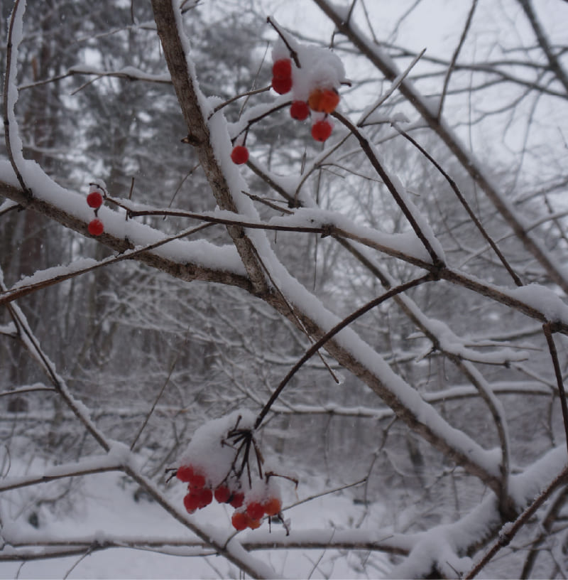 雪が人々にもたらす恵みはスキーなどのウィンタースポーツ、そして雪どけ水による美味しいお米などたくさんありますが、ひとたび森の自然に分け入ると、白一色ではない雪の世界が表情豊かで、それだけでわくわくします。