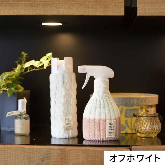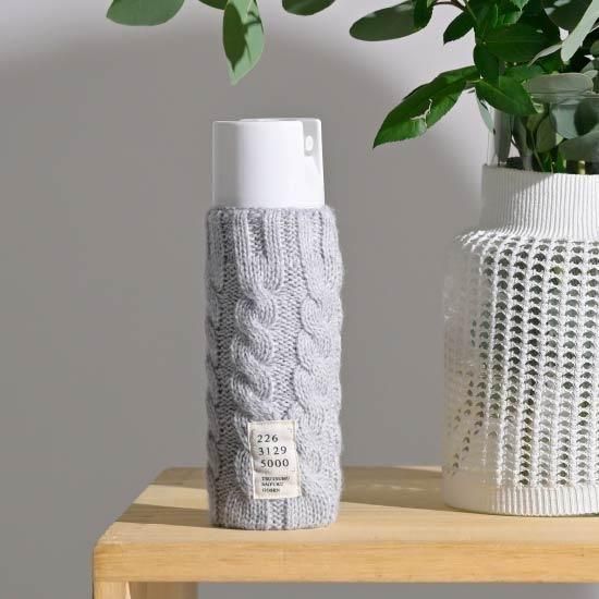 生活感が出やすいスプレーを、ニットでやさしく包みました。パッケージを隠して、そのままお部屋に置けるすっきりとしたデザインです。