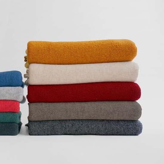 柄のないすっきりとした天竺編みは、シンプルだからこそ素材の良さが際立ち、幅広いスタイルになじみます。