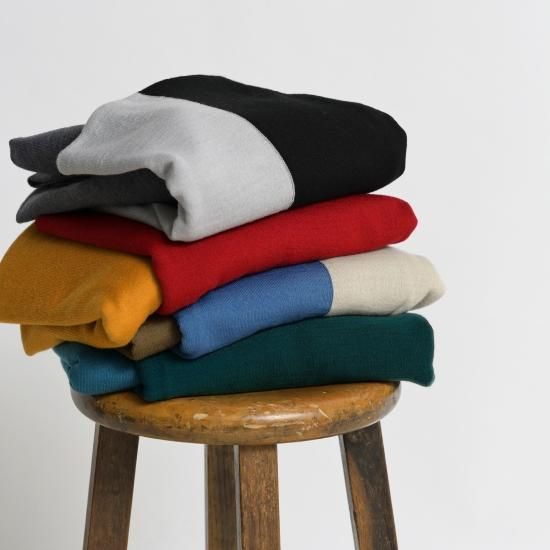 カラーブロックの幅が違うから、上下反転させると見えるカラーの分量が変わり、スタイルに合わせて自在にアレンジ可能。ベーシックな装いにプラスするだけで「今日の雰囲気」が完成します。
