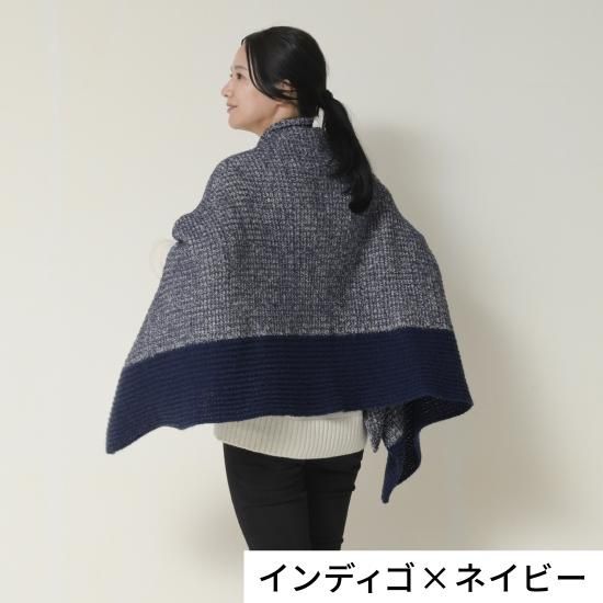羽織るタイプのストールポンチョ「nico(にこ)」。ネーミングの由来は、手を通す穴が2個(にこ)あることから。