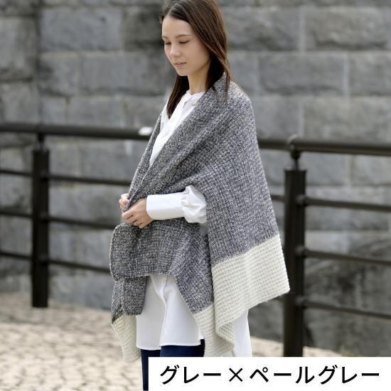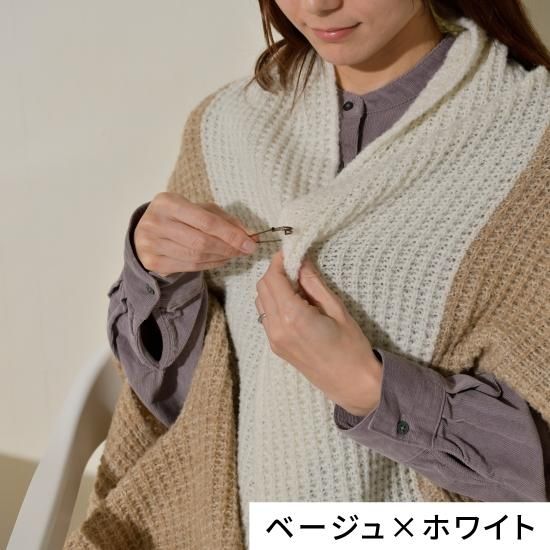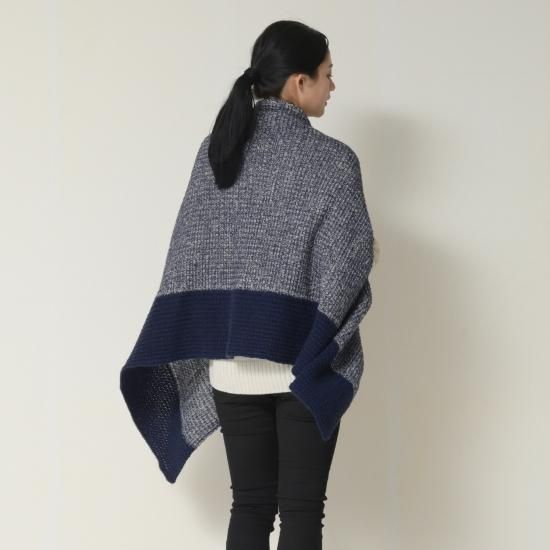 大判でふくらみのあるストールポンチョは、ブラケットやひざかけとしても優秀です。