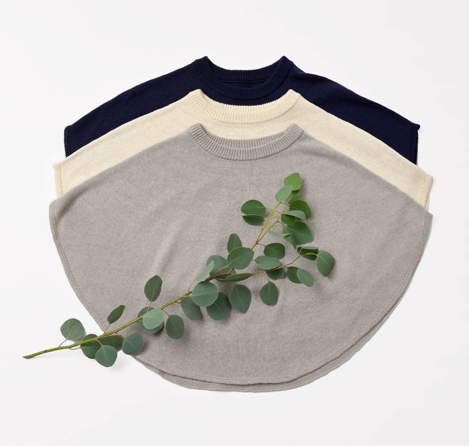 新しい形 maruは、丸みのあるデザインが特徴のポンチョケープです。コンパクトで、かぶるだけで簡単におしゃれ。綿麻素材で春夏の重ね着にぴったりです。