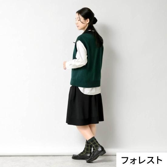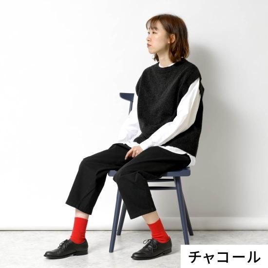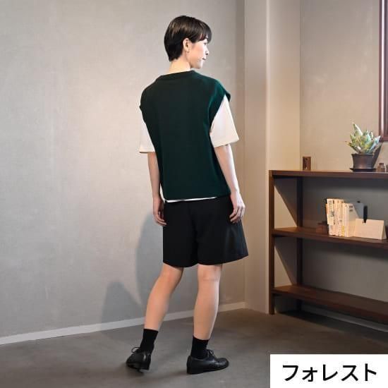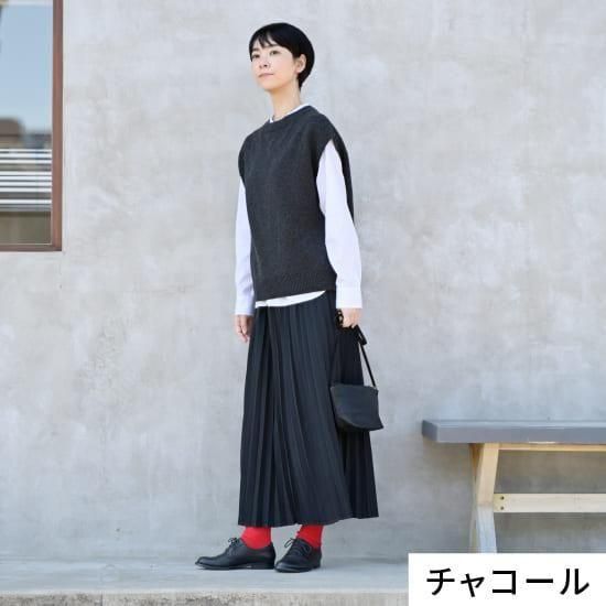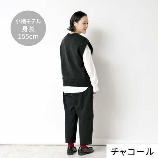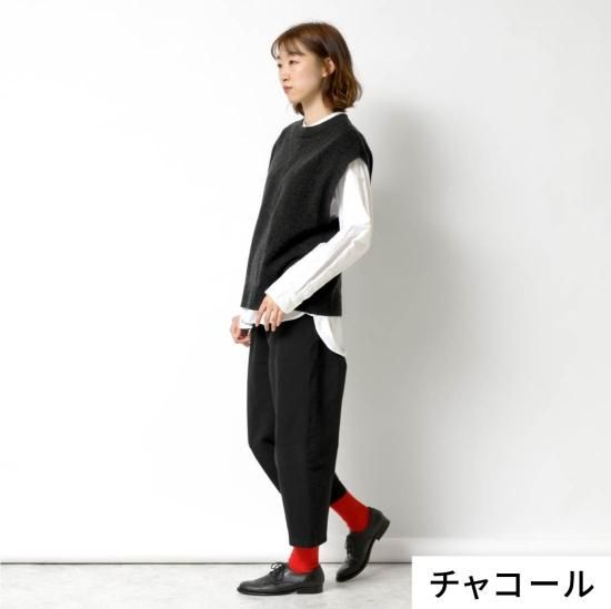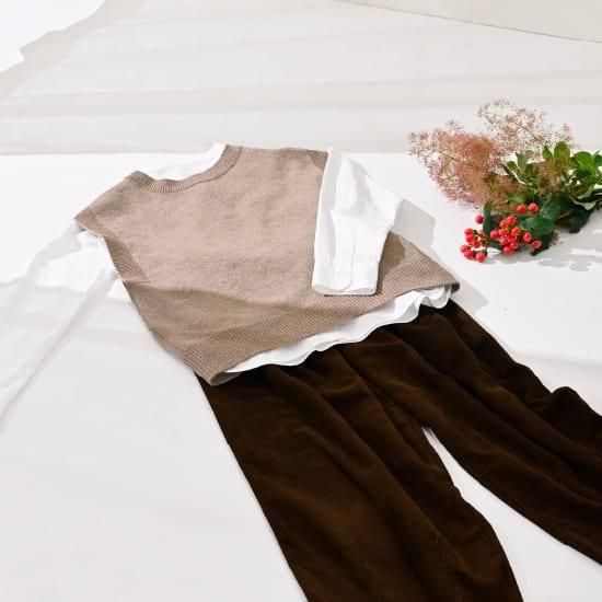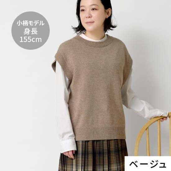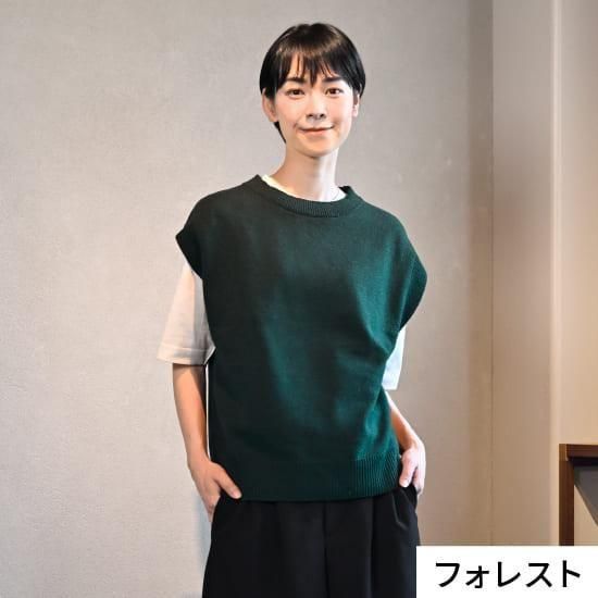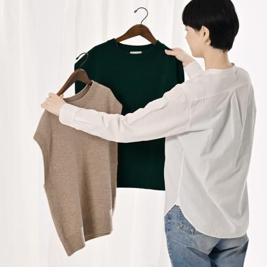白シャツやハイネックのカットソーに重ねるだけで、ぐっと洗練された印象に。シンプルな天竺編みのベストだから、どんなスタイルにもなじみやすく、いつものコーディネートに自然に取り入れられます。