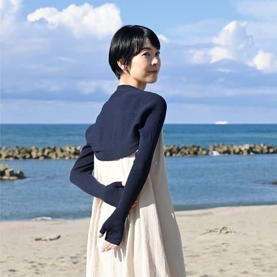 陽ざしが気になる季節には、羽織るだけで首から肩、袖や手の甲まで覆うボレロが便利です。日焼け止めに効果的な作りで、UVカット率は「99%」。
