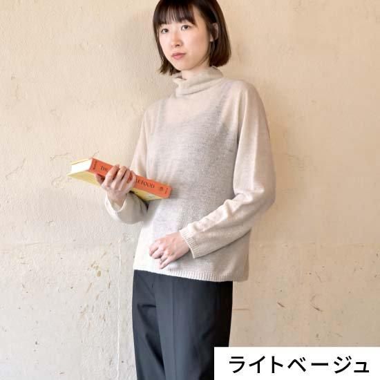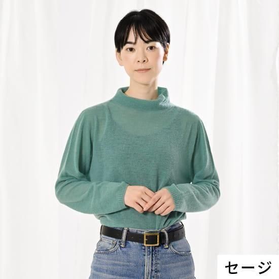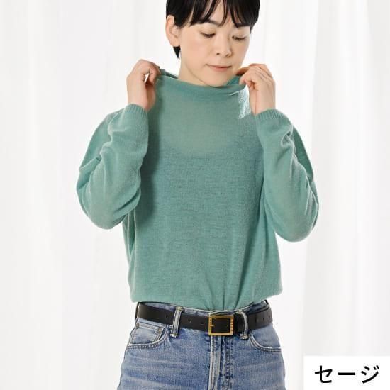 「ライトベージュ」「セージ」など薄い色合いのカラーは、ほんのりと透け感があります。キャミソールを中に着てシアーニットとしてお使いいただけます。