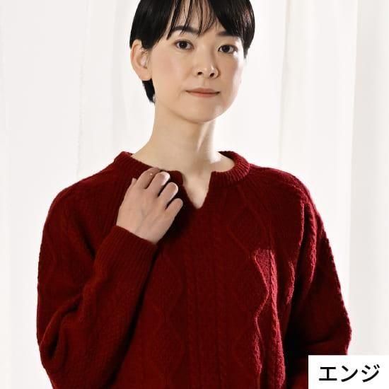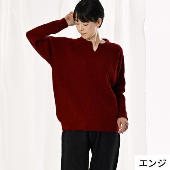 からだをつつむ / アラン柄プルオーバー キーネック ウール100%![]()
