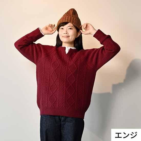 からだをつつむ / アラン柄プルオーバー キーネック ウール100%