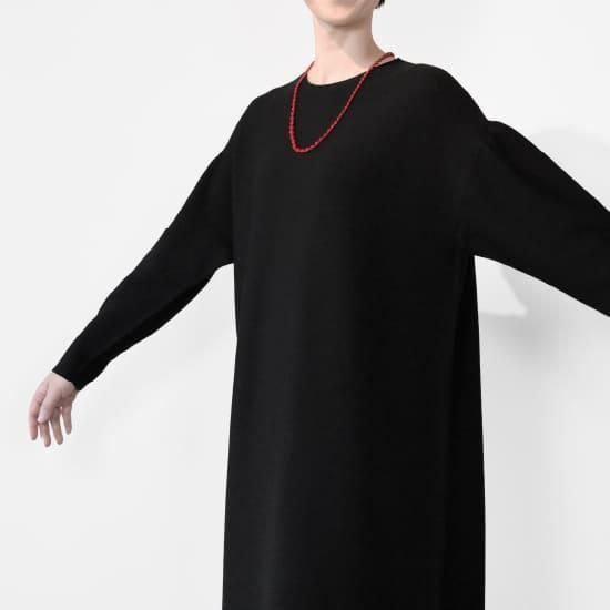 最新の「ホールガーメント」を使用することで、縫い代のないワンピースができました。縫い代の嫌なゴロゴロがないだけでなく、袖やスカートがきれいに広がります。