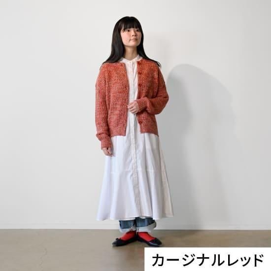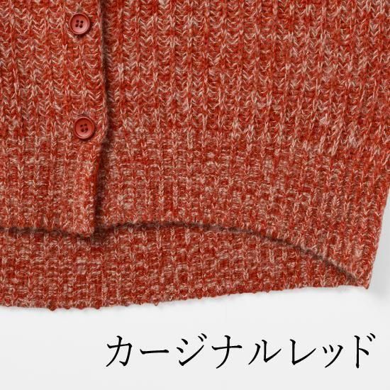 ウールとアルパカの糸を合わせることで、単色では出せない奥行きのある杢調の色合いに仕上げました。やさしく温もりを感じる「カージナルレッド」をはじめ、合わせやすいベーシックカラーもラインナップ。
