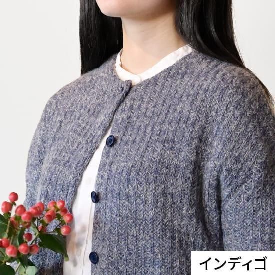表情のある編み方で、軽くて心地よい秋冬らしいカーディガンをつくりました。後ろ身頃を長めに仕立てたコクーンシルエットは、繭に包まれるような安心感が生まれます。