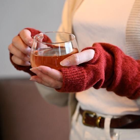 手首をニットで覆うと、じんわりと暖かくなります。うっかり外した時には、急に寒さを感じます。冷え性の方におすすめです。