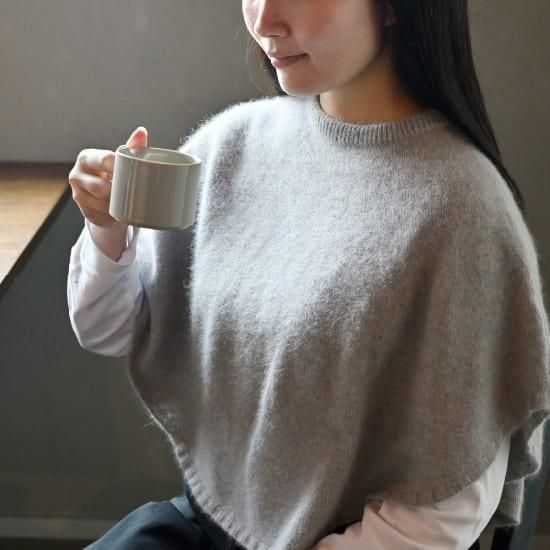 ふわふわとただよう冬のもやから、やわらかな毛足があたたかいポンチョケープが生まれました。
