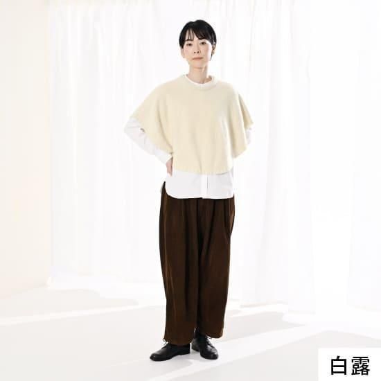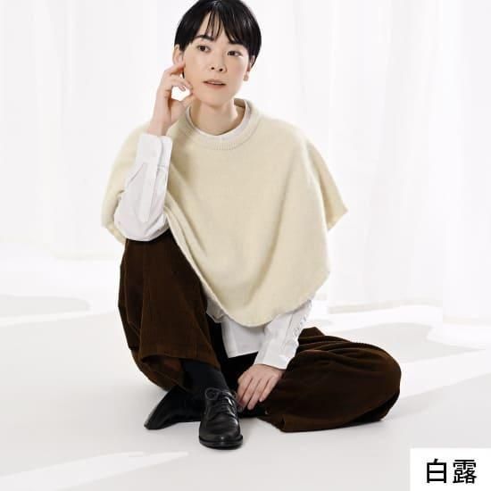 丸みのあるデザインが特徴のポンチョケープです。シンプルな装いに取り入れるだけで、コーディネートが完成します。袖がない分動きやすく、デスクワークやお出かけにもストレスなく着られます。
