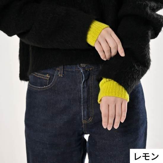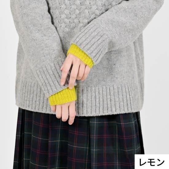 袖口からのぞくアクセントカラーが、コーディネートのポイントに。重ね着しているように見える「見せる手首ウォーマー」に、贅沢な「カシミヤ100%」が加わりました。